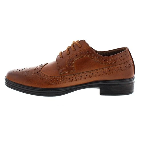 These very sophisticated Boys Deer Stags® Ace wingtip oxfords are a stylish alternative to a plain dress shoe. These oxfords are made up of a leather upper, PU outsole, EVA insole, and a lightweight PU outsole.