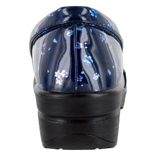 These Womens Easy Works by Easy Street Leeza floral patent work clogs works for you with its twin gore silhouette that ensures it will stay perfectly on your foot throughout your busy day. A padded topline effectively reduces the pressure on your heel and ankle. There is premium man made uppers and soft tricot linings that envelopes your foot in cushioned comfort with a removable orthotic foam insole that is built with a supportive arch cookie, anti-microbial and impact-absorbing innovation. They are developed on a non-marking, slip-resistant, channeled tread PU outsole that is extremely lightweight making it good to wear for long periods of time.Also available in Wide Widths.