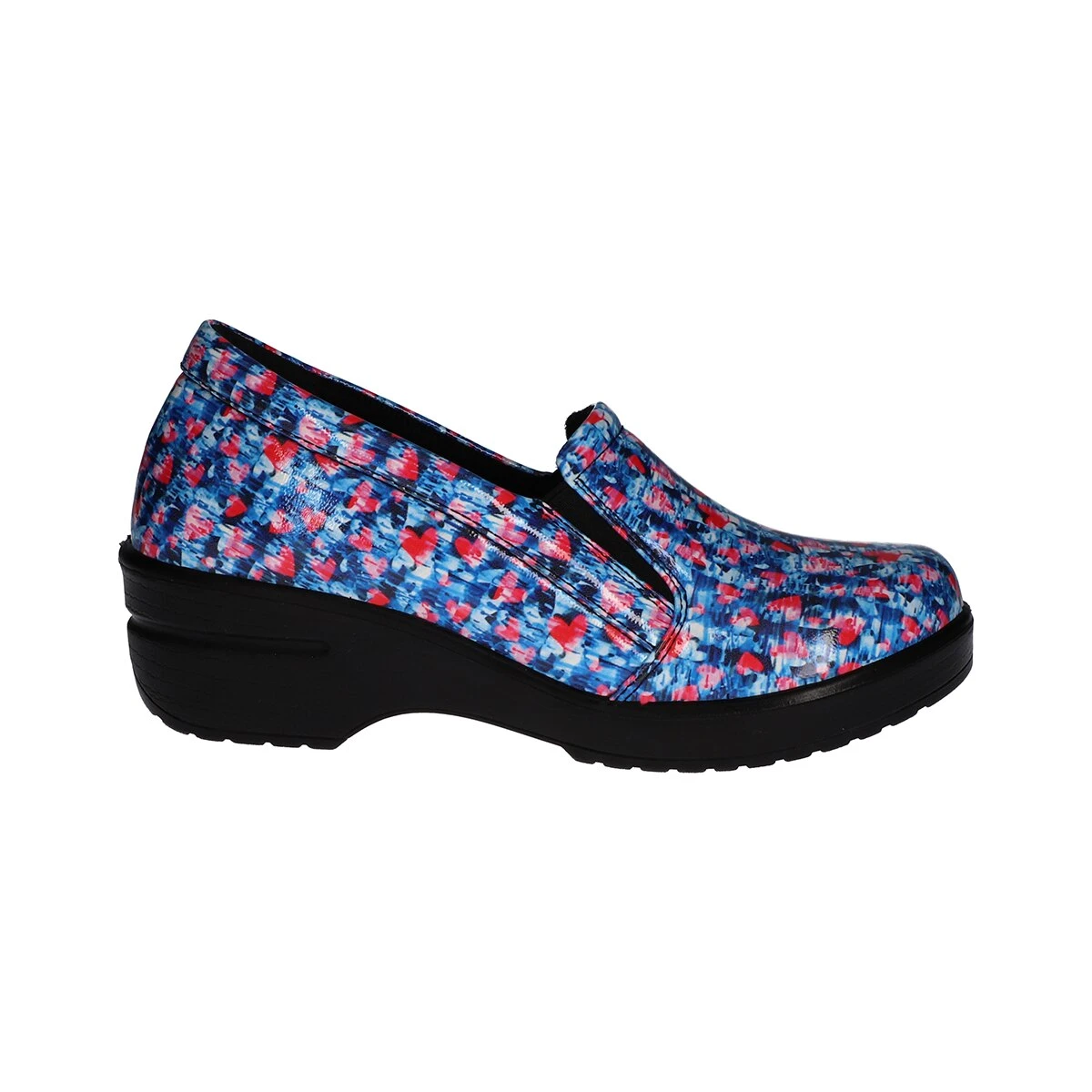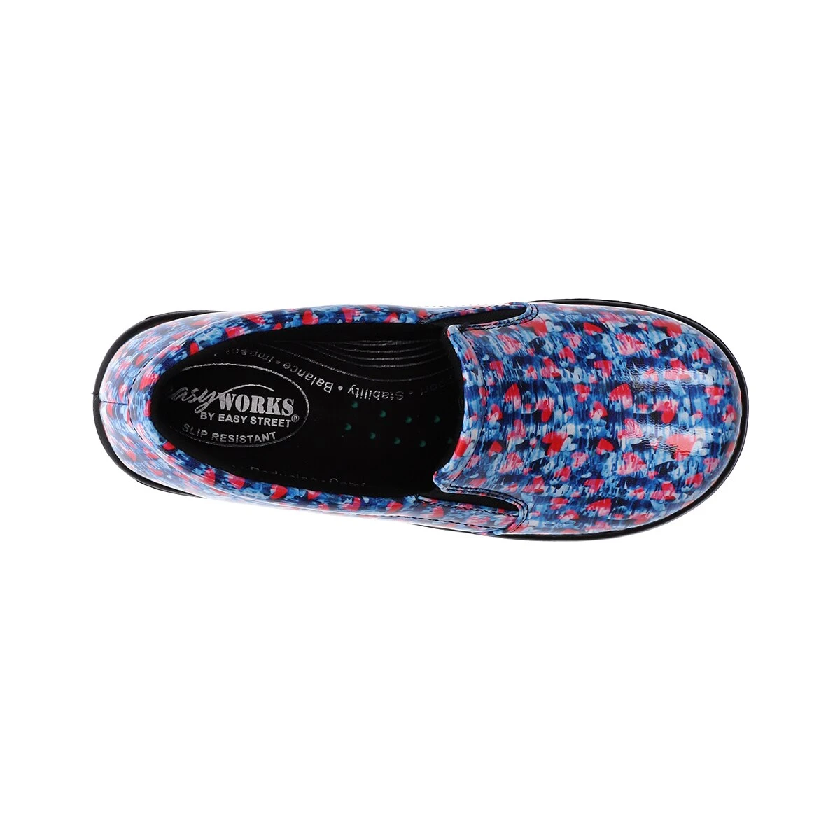 These Womens Easy Works by Easy Street Leeza Work Clogs will stay perfectly on your feet throughout your busy day. A padded topline effectively reduces the pressure on your heel and ankle and a soft tricot lining envelopes your feet for comfort.Also available in Wide Widths.