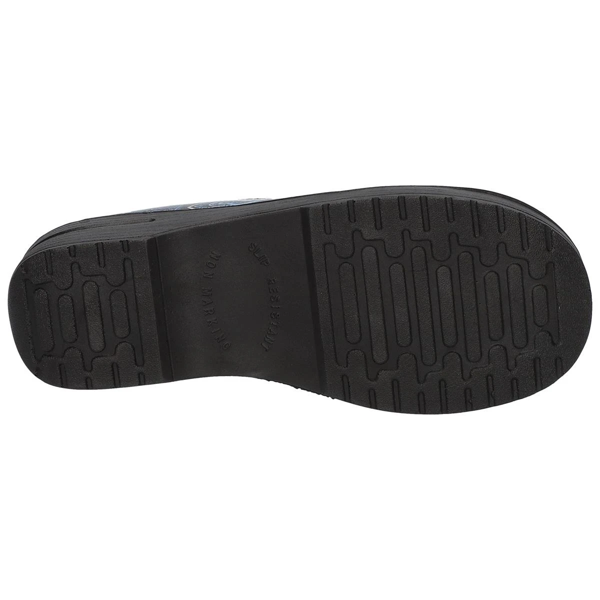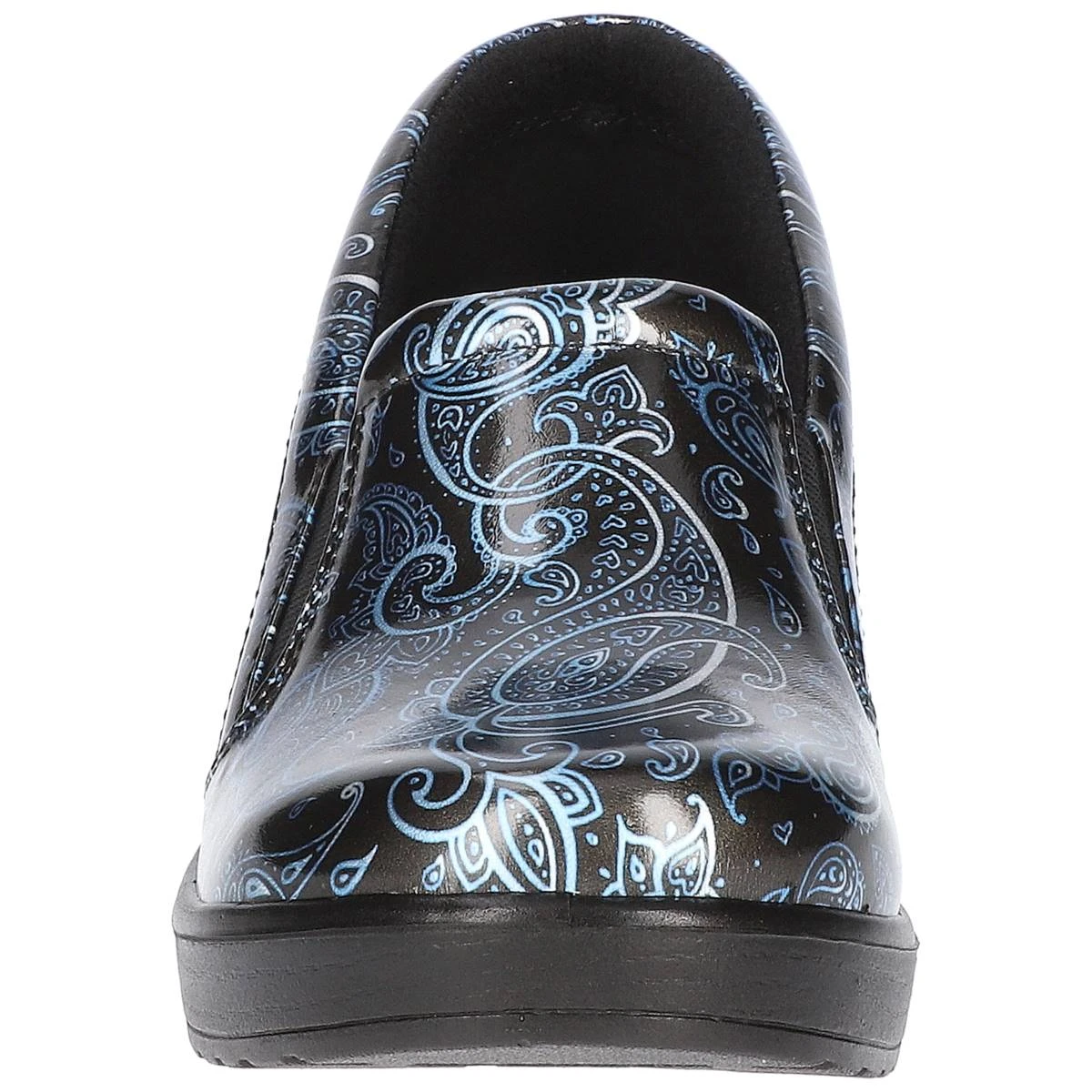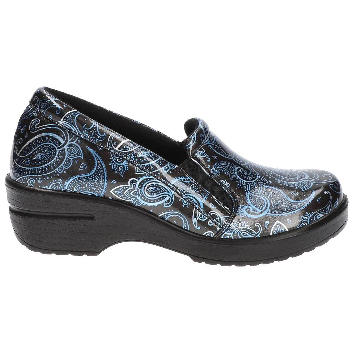 These Womens Easy Works by Easy Street Leeza clogs work for you with its twin gore silhouette that ensures it will stay perfectly on your foot throughout your busy day. A padded topline effectively reduces the pressure on your heel and ankle. A soft tricot lining envelopes your foot in cushioned comfort. The orthotic insole is built with a supportive arch cookie, anti-microbial and impact absorbing innovation. Developed on a non-marking, slip-resistant outsole that is extremely lightweight making it good to wear for long periods of time.Also available in Wide Widths.