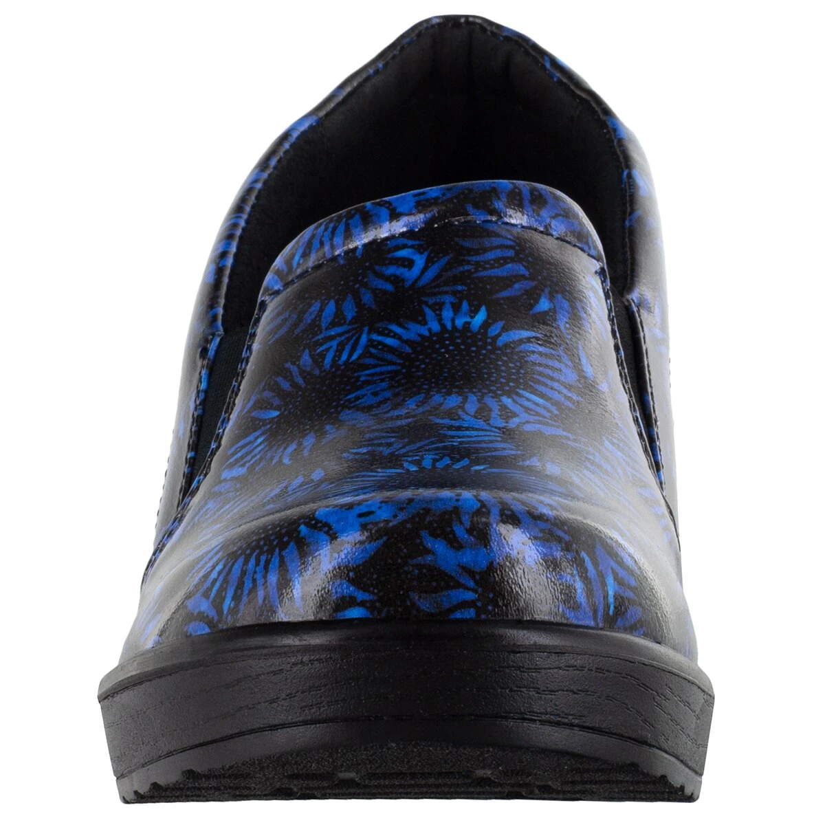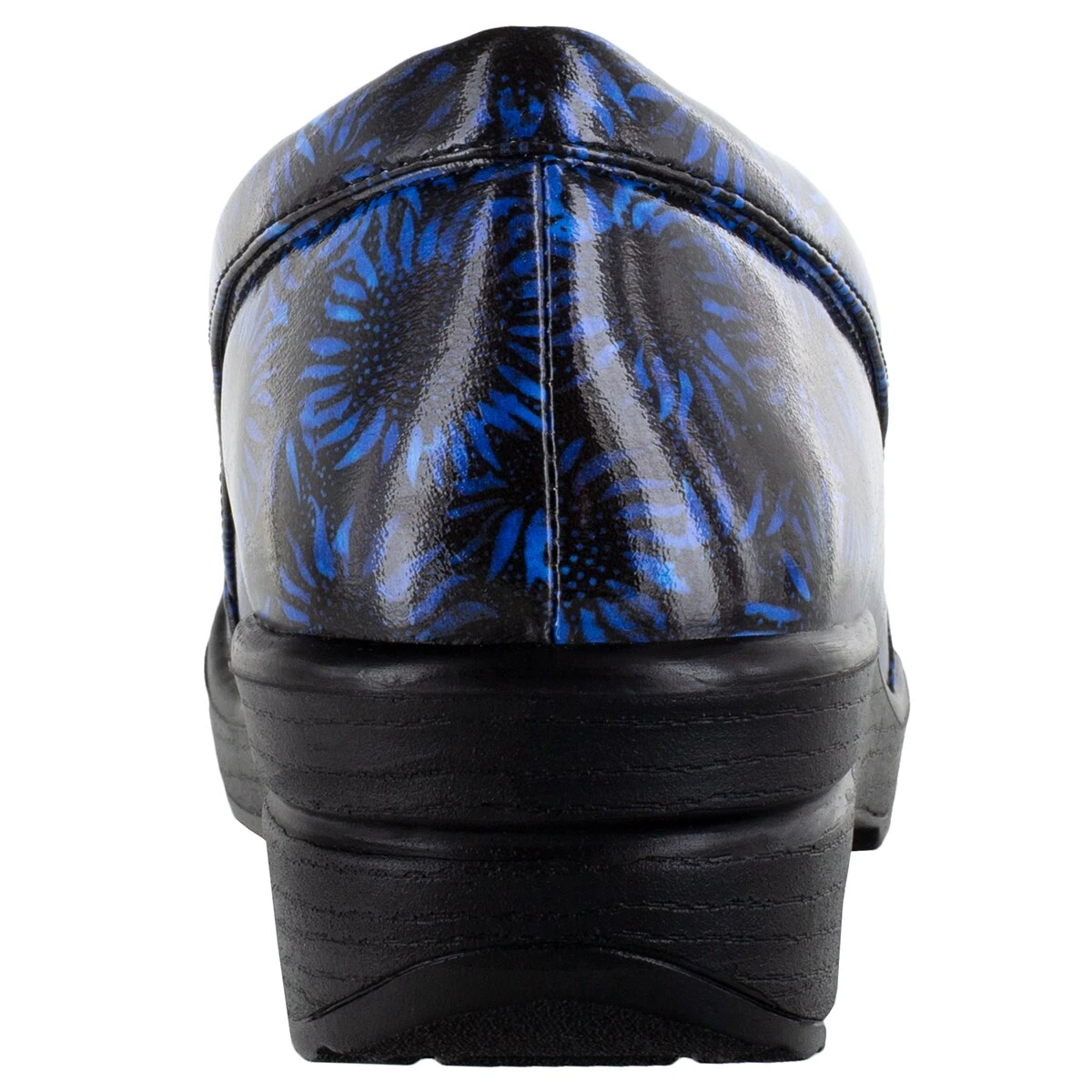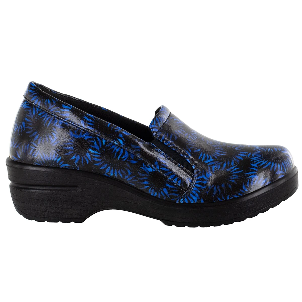 These Womens Easy Works by Easy Street Leeza work clogs works for you with its twin gore silhouette that ensures it will stay perfectly on your foot throughout your busy day. A padded topline effectively reduces the pressure on your heel and ankle. They feature premium man-made uppers and soft tricot linings that envelopes your foot in cushioned comfort with a removable orthotic foam insole that is built with a supportive arch cookie, anti-microbial and impact-absorbing innovation. They are developed on a non-marking, slip-resistant, channeled tread PU outsole that is extremely lightweight making it good to wear for long periods of time.Also available in Wide Widths.