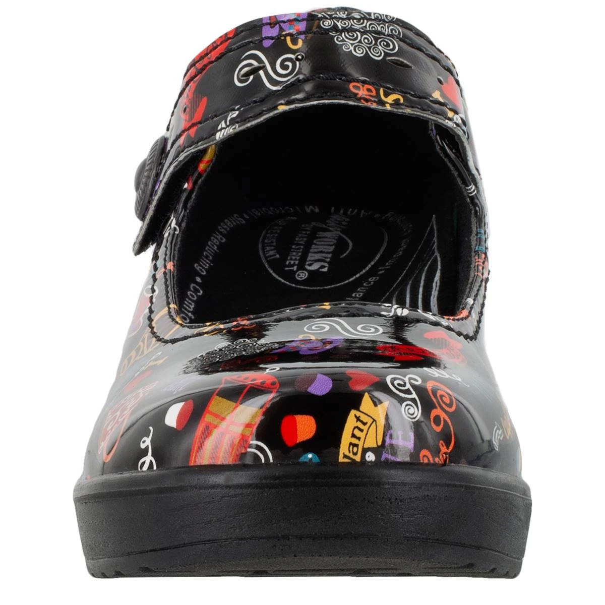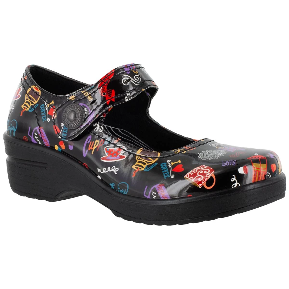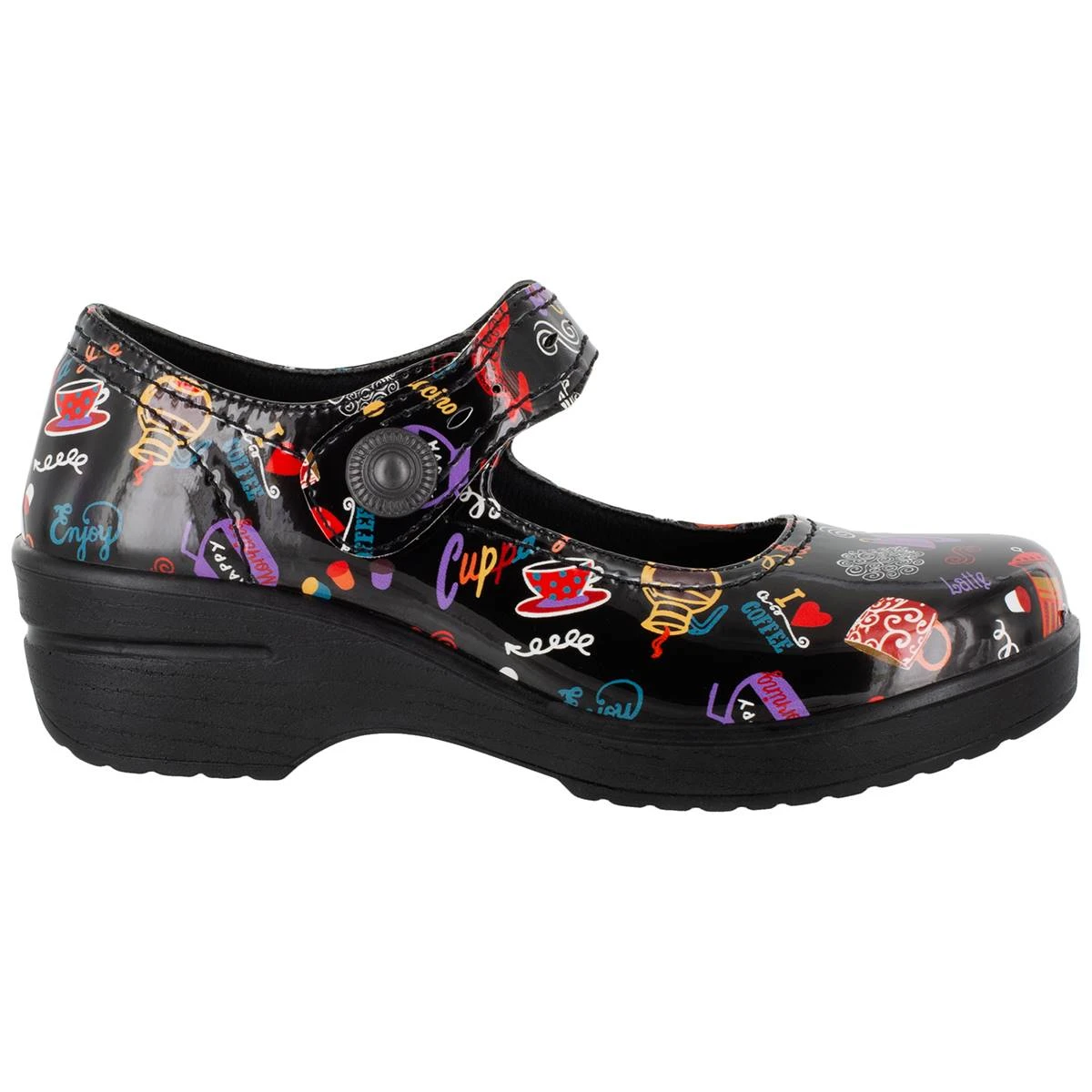 Durability and performance where you need it, the Letsee by Easy Works is a cute Mary Jane work shoe with a hook and loop closure strap, accented with a decorative button for an adjustable, comfortable fit. Maximum support is enhanced by the molded footbed that provides supreme comfort and stability. The removable insole and generous toe box allow for extra roominess in one easy swoop. The outsole is crafted with grip inducing rubber treads for absorbing shock and slip prevention. Super lightweight with innovative technology to keep your feet feeling happy on those long, hard days.Also available in Wide Widths.