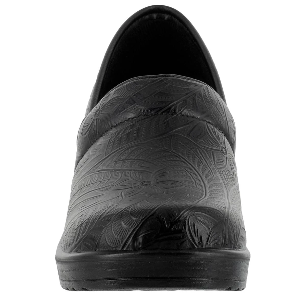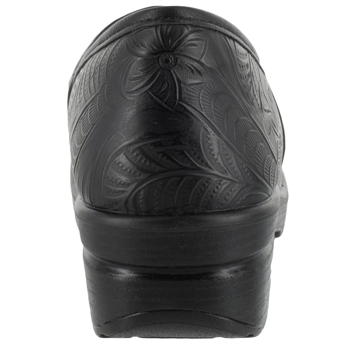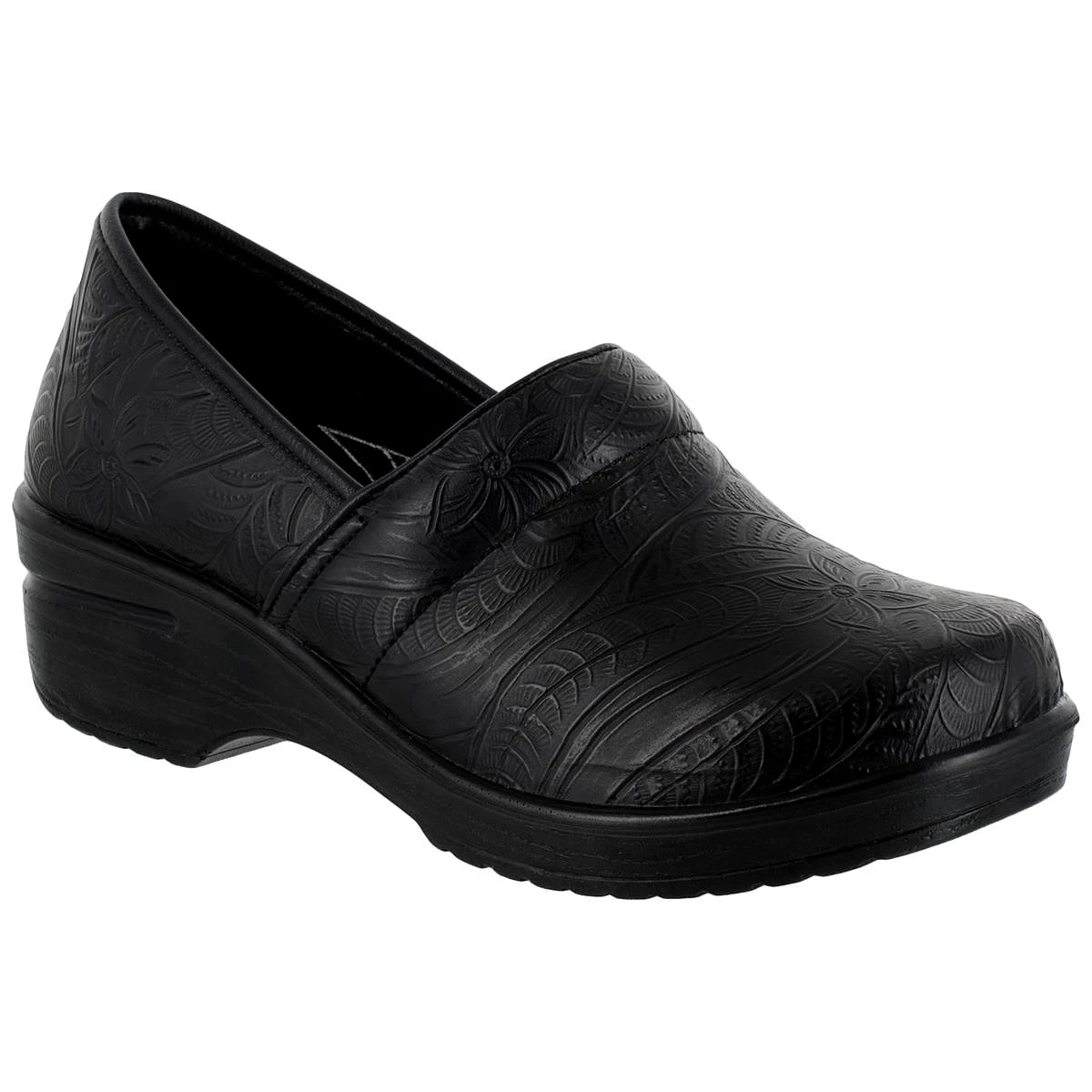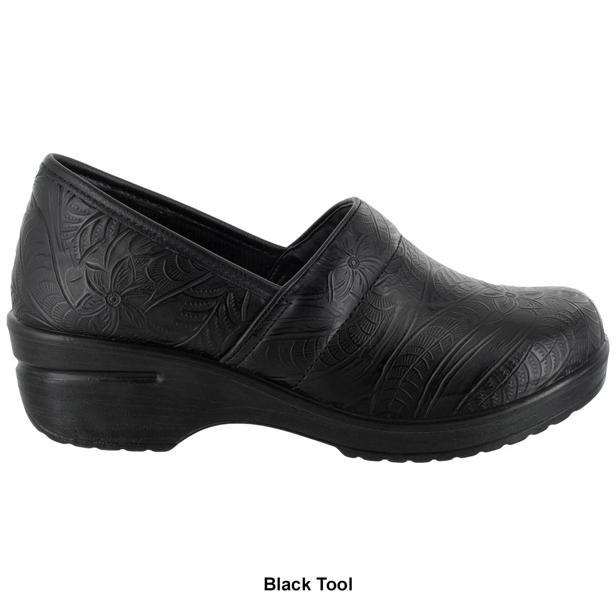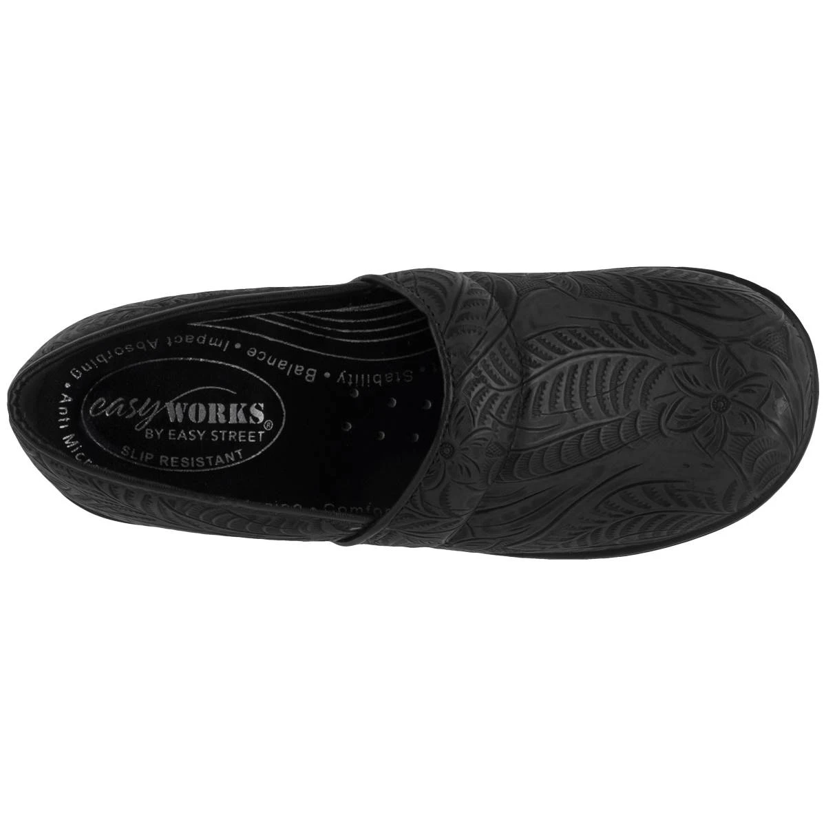 The Womens Easy Works by Easy Street Lyndee tool clogs are a part of the Easy Works by Easy Street collection. They showcase durable man-made uppers with a generous toe box and easy to clean material. They feature Easy Motion Technology that provides premium foam insoles with antimicrobial lining and arch support and they are oil and water slip-resistant.Also available in Wide Widths.